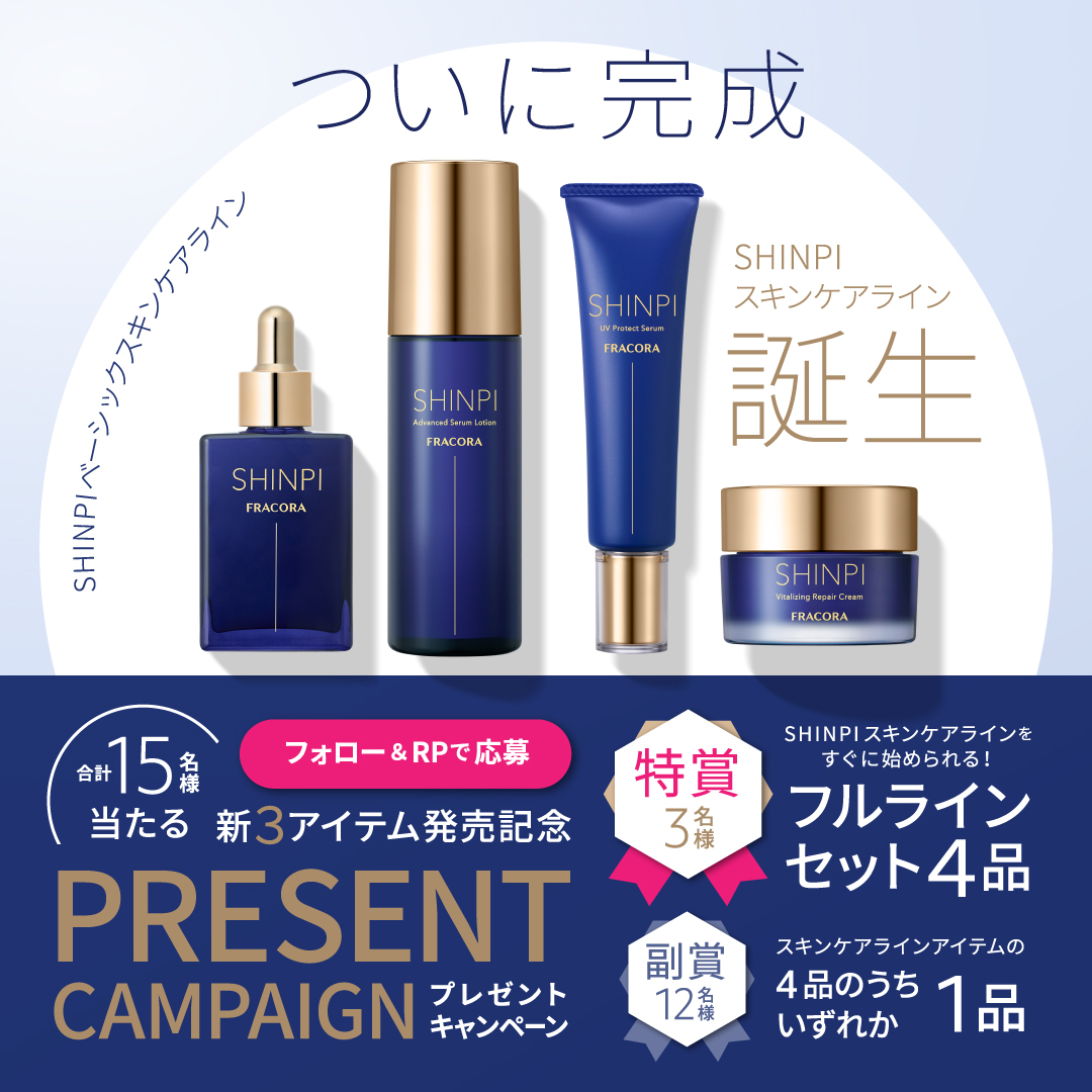 FRACORA公式Xで、「SHINPI ベーシックスキンケア」誕生を記念して新商品を体感できるプレゼントキャンペーンを実施いたします。