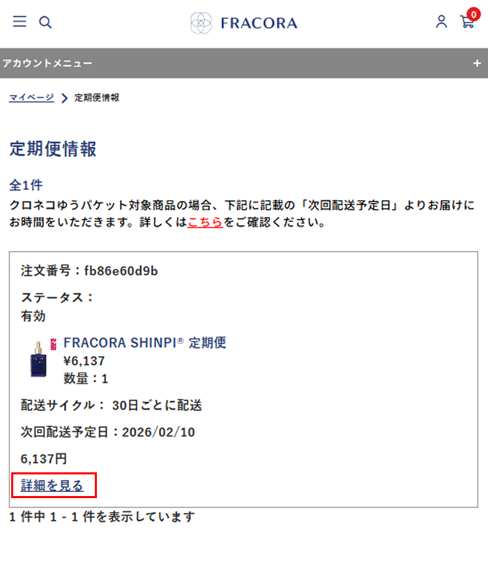 ① マイページから「定期便情報」ページを選択