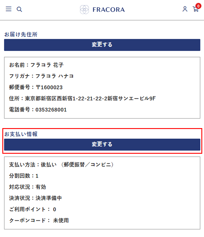 ③ 「お支払情報」の項目の「変更する」を選択