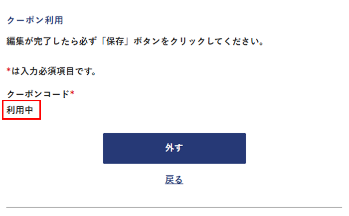 ④ クーポン利用欄にクーポンコードを入力して保存する